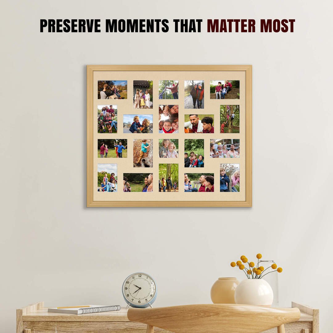Display your best moments with this 20-opening collage photo frame from ProcutGlobal. Designed to hold 6X4 (x18) and 4X4 (x2) photos, it is ideal for creating a personal photo gallery at home or in the office.