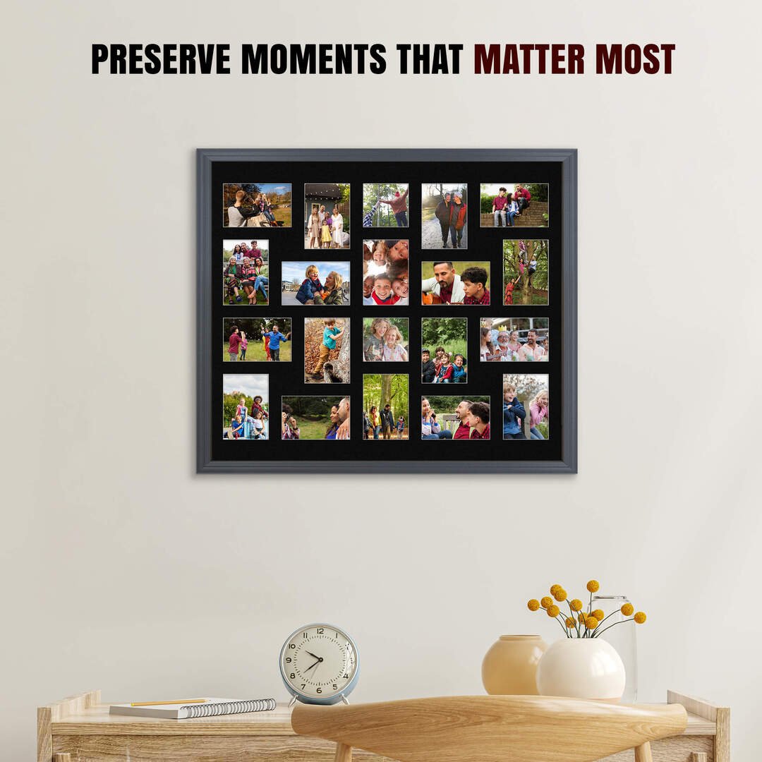 Display your best moments with this 20-opening collage photo frame from ProcutGlobal. Designed to hold 6X4 (x18) and 4X4 (x2) photos, it is ideal for creating a personal photo gallery at home or in the office.