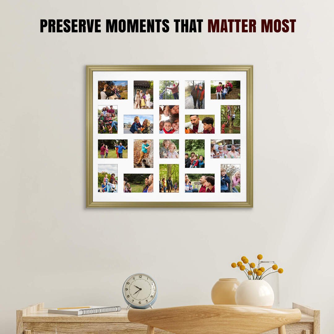 Gold Colour Multi Aperture Collage Frame 6X4 (x18) and 4X4 (x2) Pictures – 80x70cm Picture Frame Size