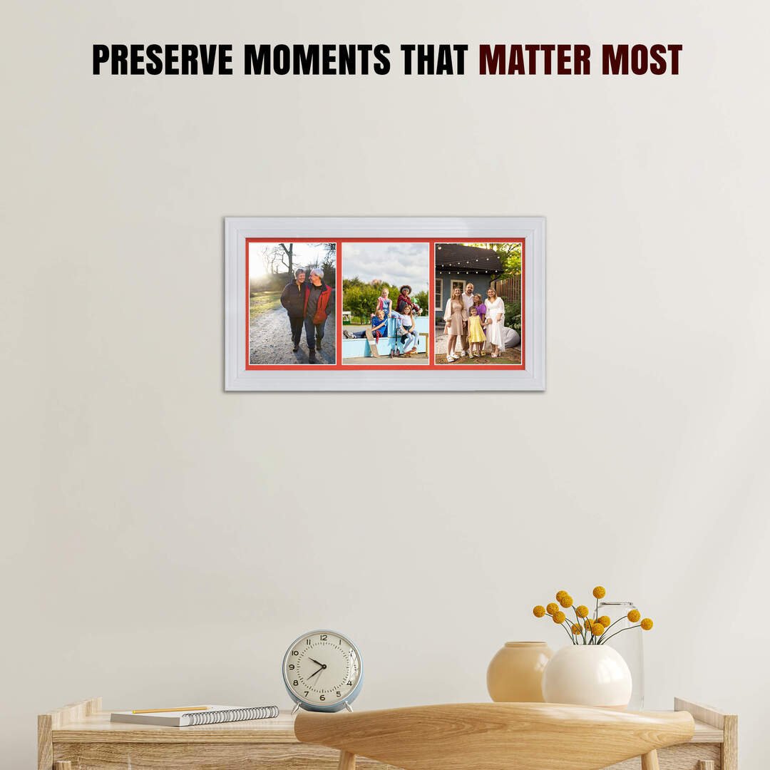 White Colour Multi Aperture Photo Frame 7X5 (x3) Pictures – 16x8 Picture Frame Size