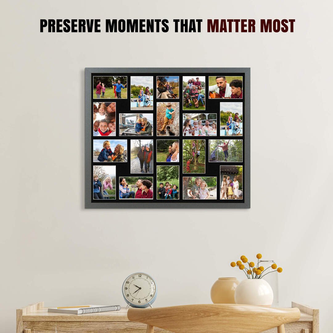 Organise your memories in one neat and stylish display with this 20-opening collage frame by ProcutGlobal. Designed to fit 6X4 (x18) and 4X4 (x2) size photos, this frame is perfect for family pictures, travel highlights, or milestone moments.