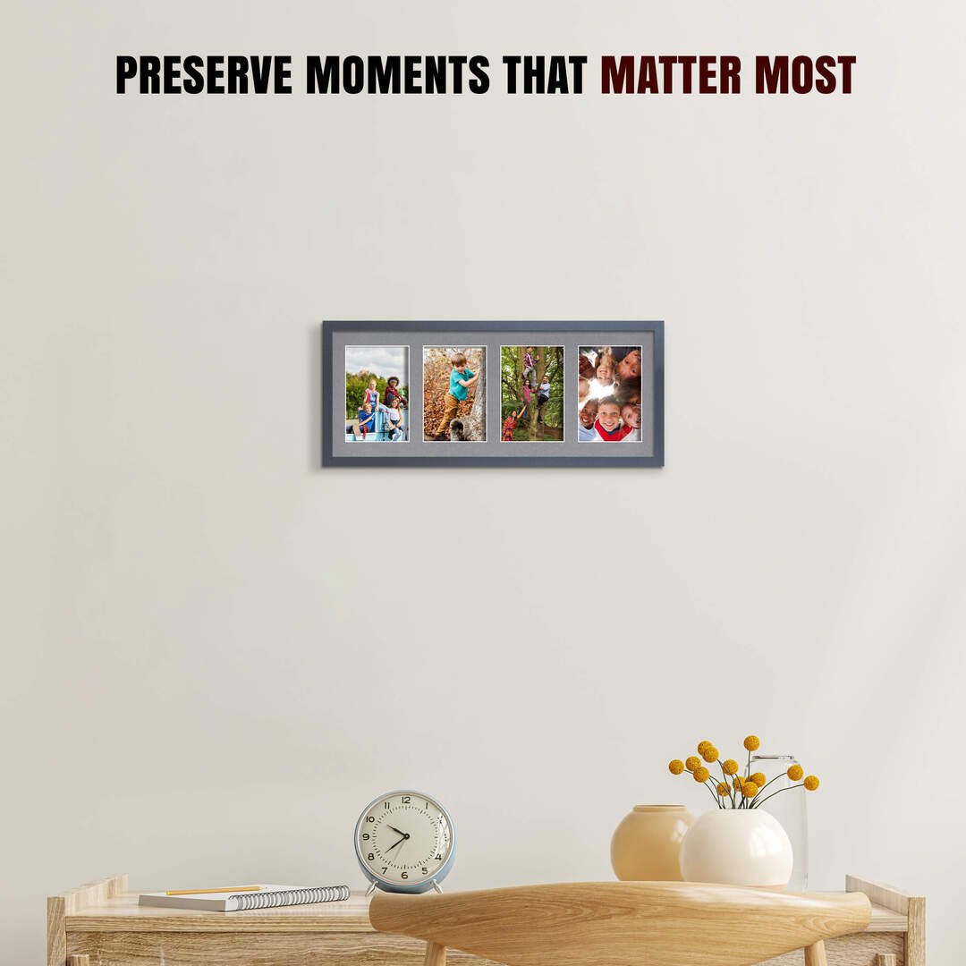Dark Grey Colour Multi Aperture Photo Frame 6X4 (x4) Pictures – 50x20cm Picture Frame Size