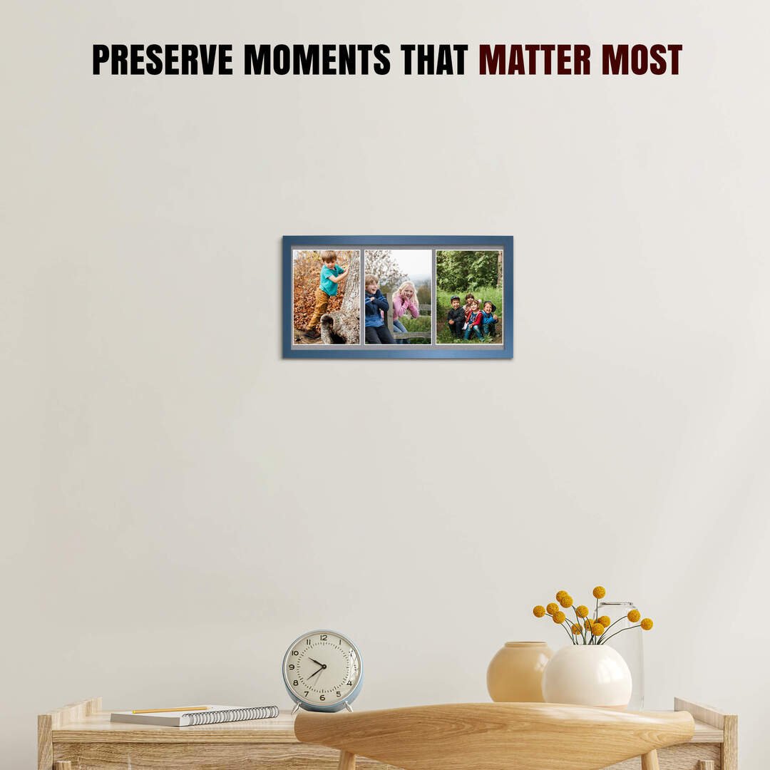 Navy Blue Colour Multi Picture Photo Frame 7X5 (x3) Pictures – 16x8 Frame Size