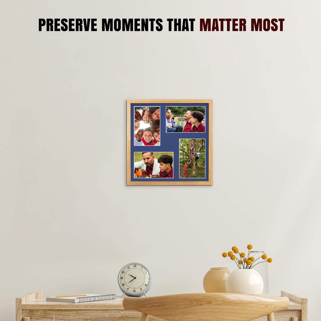 Oak Colour Multi Aperture Photo Frame 6X4 (x4) Pictures – 12x12 Picture Frame Size