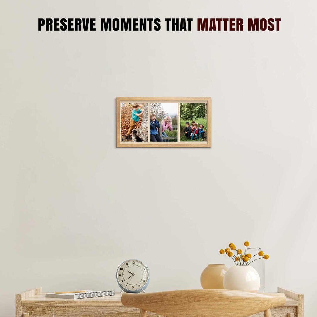 Oak Colour Multi Picture Photo Frame 7X5 (x3) Pictures – 16x8 Frame Size
