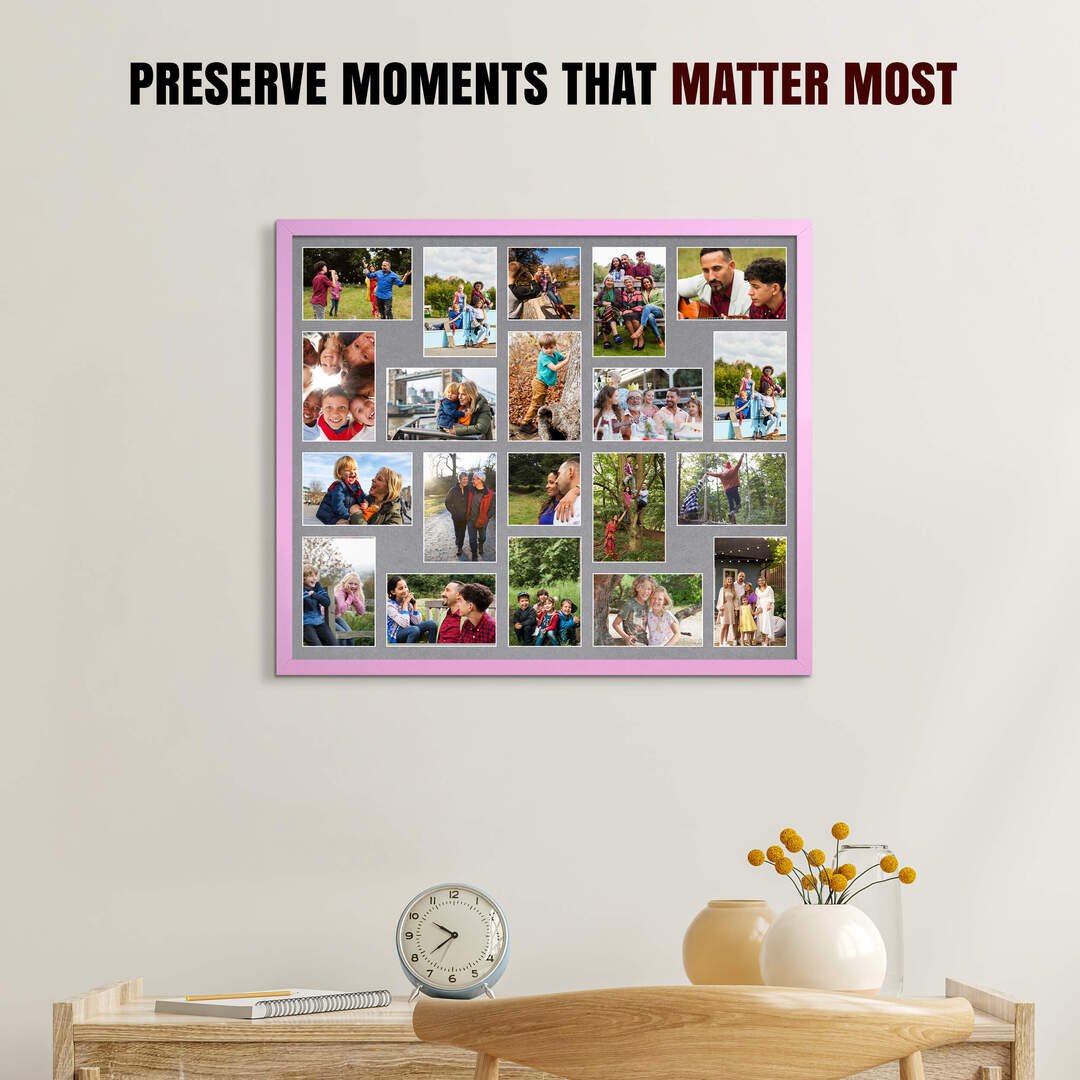Pastel Pink Colour Multi Aperture Collage Frame 6X4 (x18) and 4X4 (x2) Pictures – 80x70cm Picture Frame Size