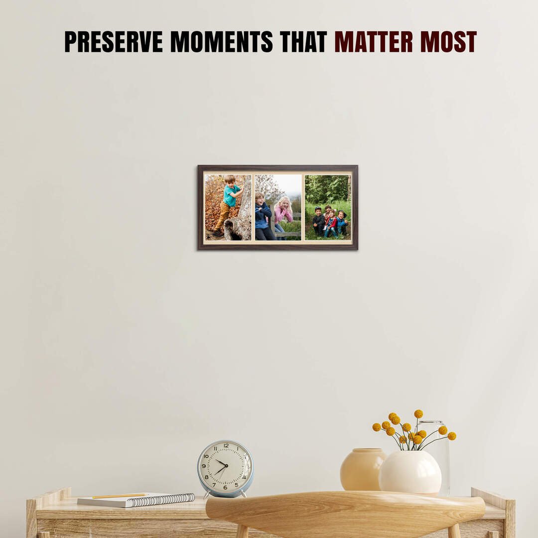 Walnut Colour Multi Picture Photo Frame 7X5 (x3) Pictures – 16x8 Frame Size