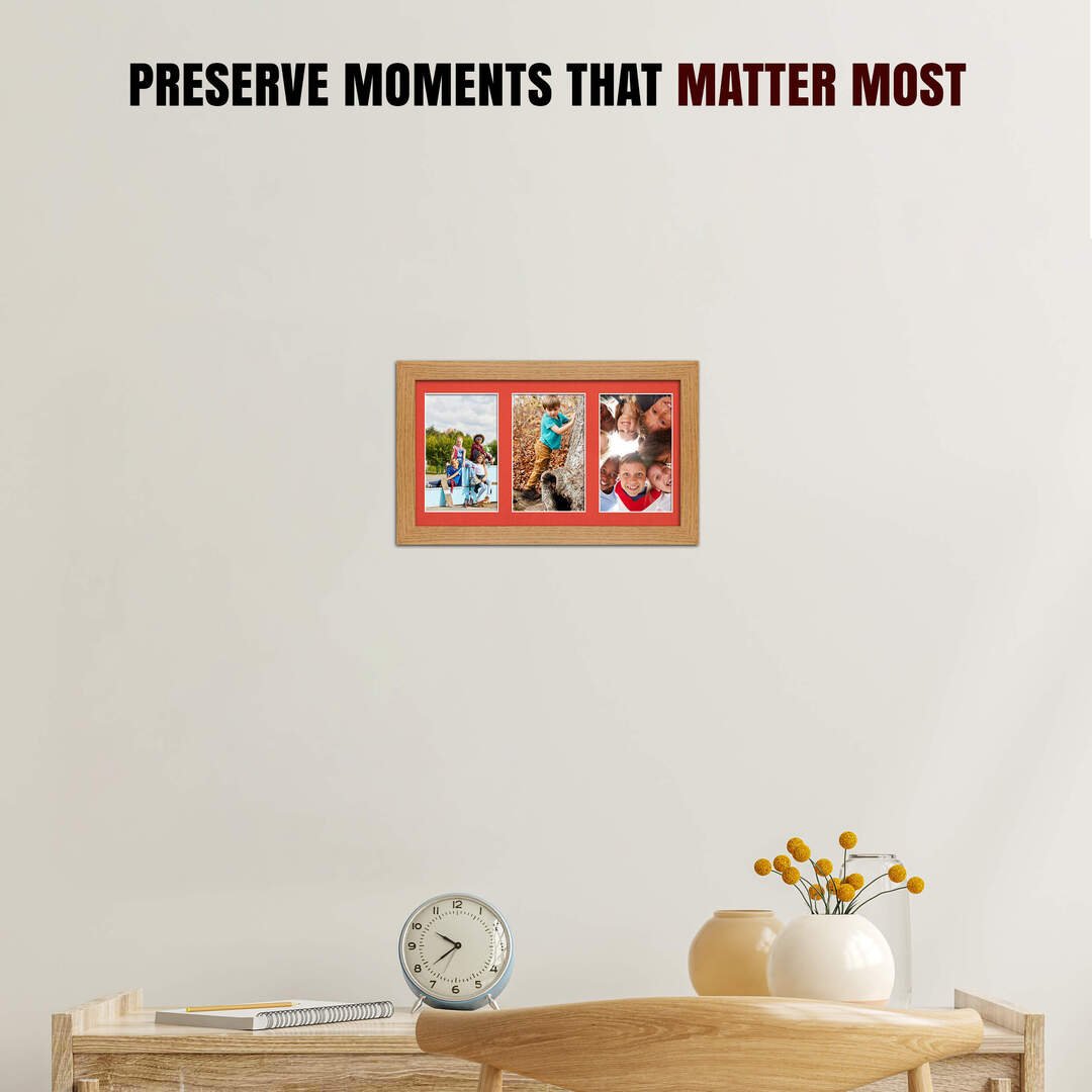 Oak Colour Multi Aperture Photo Frame 6X4 (x3) Pictures – 40x20cm Picture Frame Size