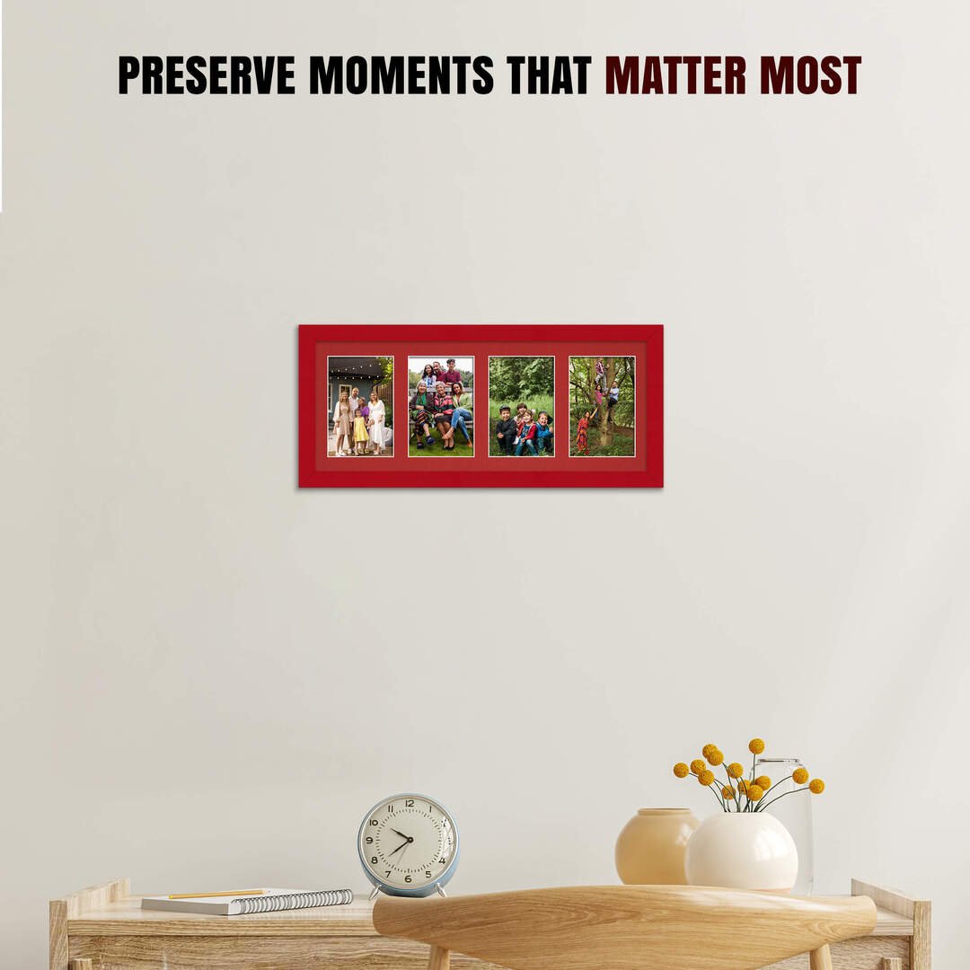 Red Colour Multi Aperture Collage Frame 6X4 (x4) Pictures – 50x20cm Picture Frame Size