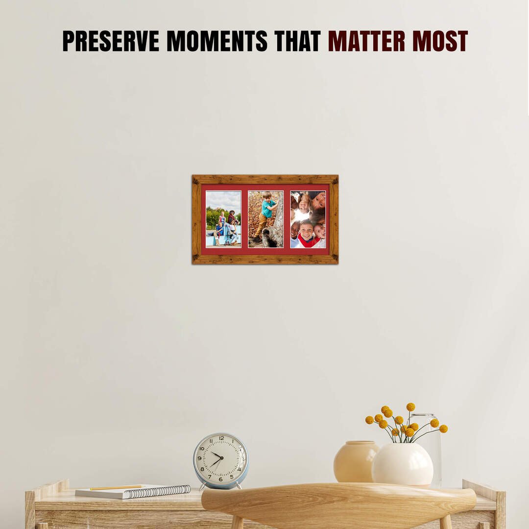 Rustic Oak Colour Multi Aperture Collage Frame 6X4 (x3) Pictures – 40x20cm Picture Frame Size