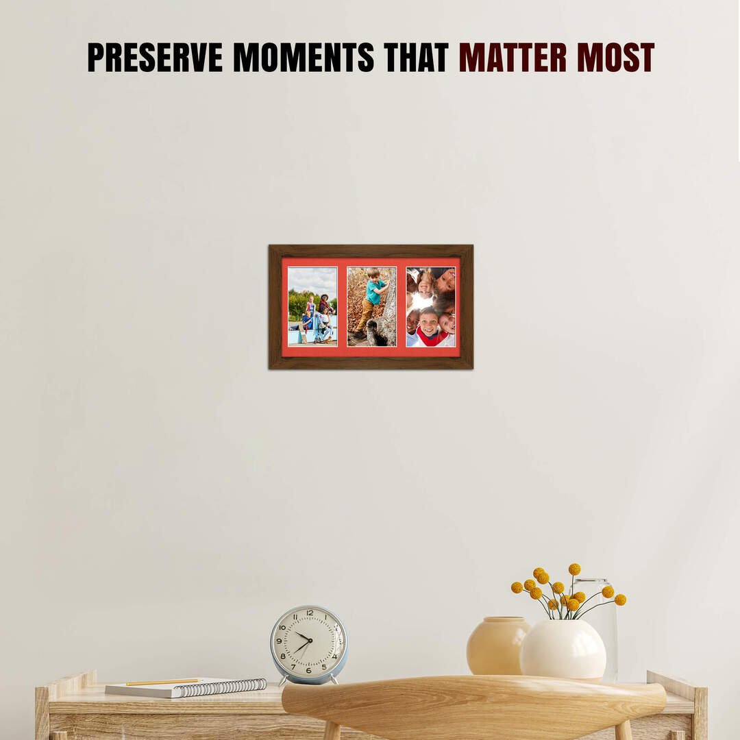 Walnut Colour Multi Aperture Collage Frame 6X4 (x3) Pictures – 40x20cm Picture Frame Size