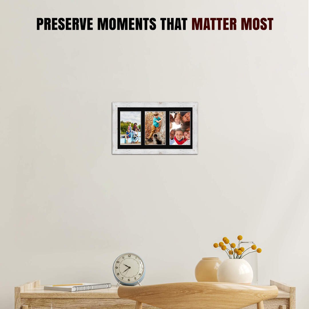 White Rustic Colour Multi Aperture Photo Frame 6X4 (x3) Pictures – 40x20cm Picture Frame Size