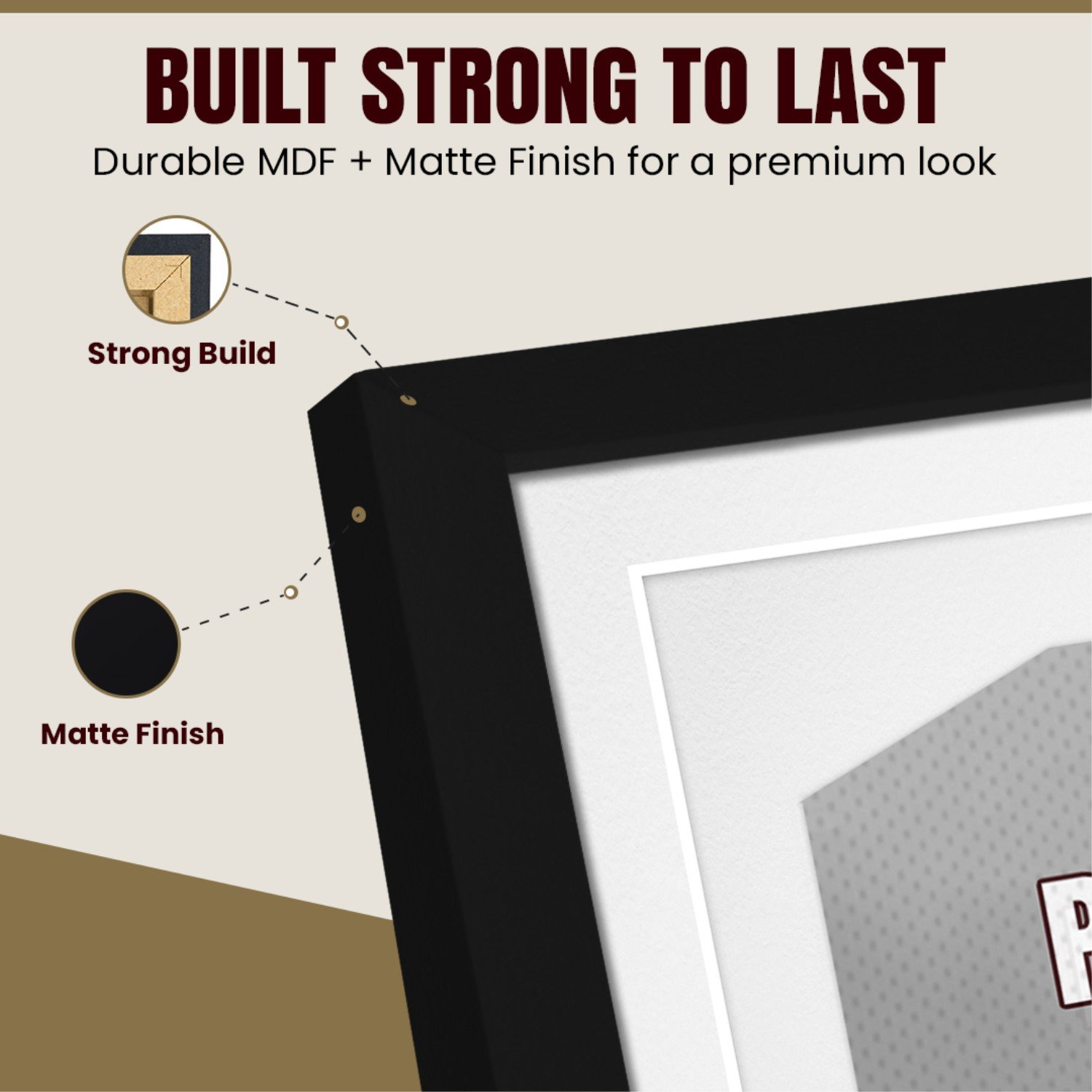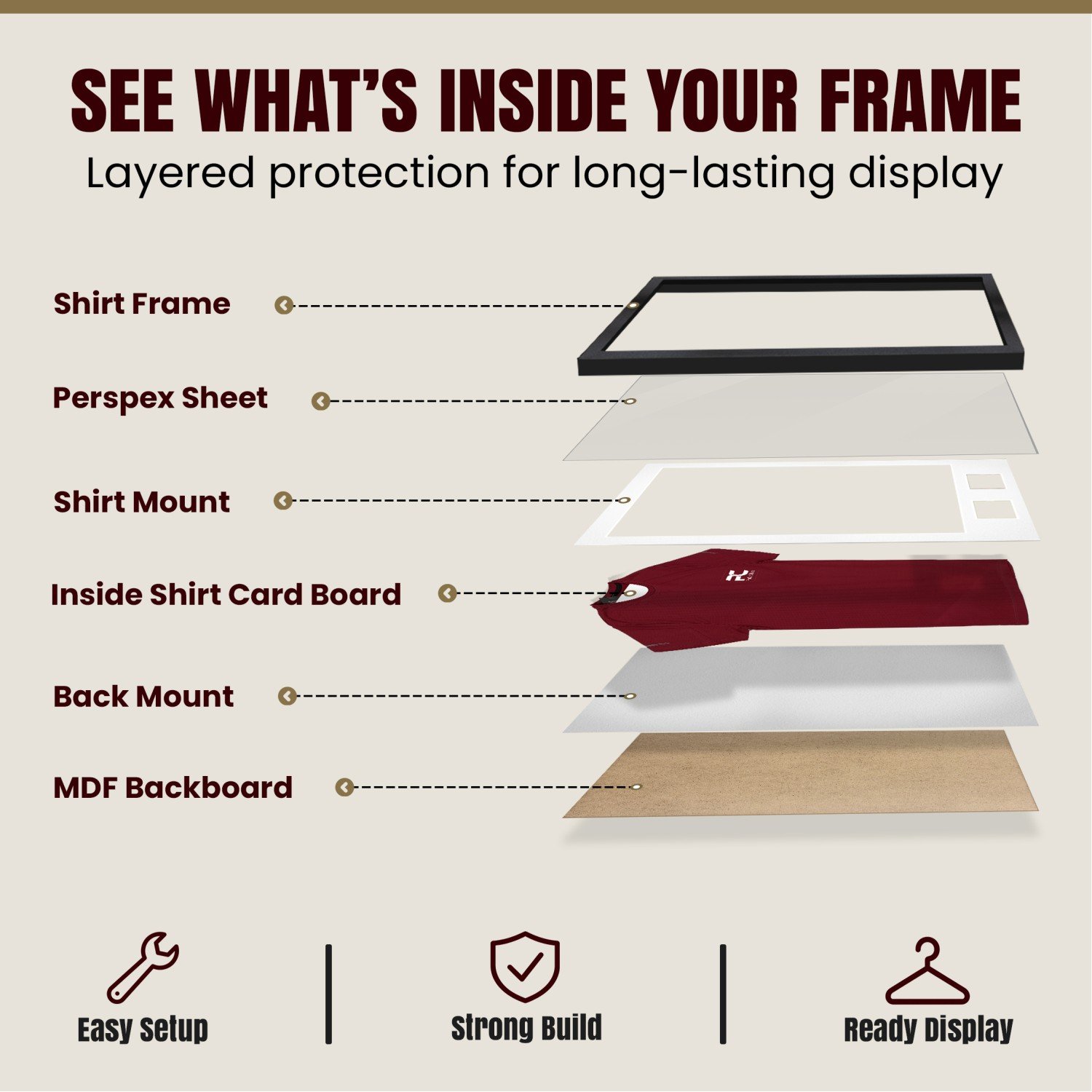 Thanks to the simple and convenient mounting system (complete with a mounting card, shaping insert, and adhesive strips), you can showcase your treasured t-shirt in a crisp and professional display in just a few minutes. No sewing, pinning, or specialized tools are required to beautifully frame your keepsake. Made from sturdy yet lightweight engineered wood, the frame comes equipped with pre-installed wall hooks, allowing you to proudly display your shirt as soon as it's assembled.