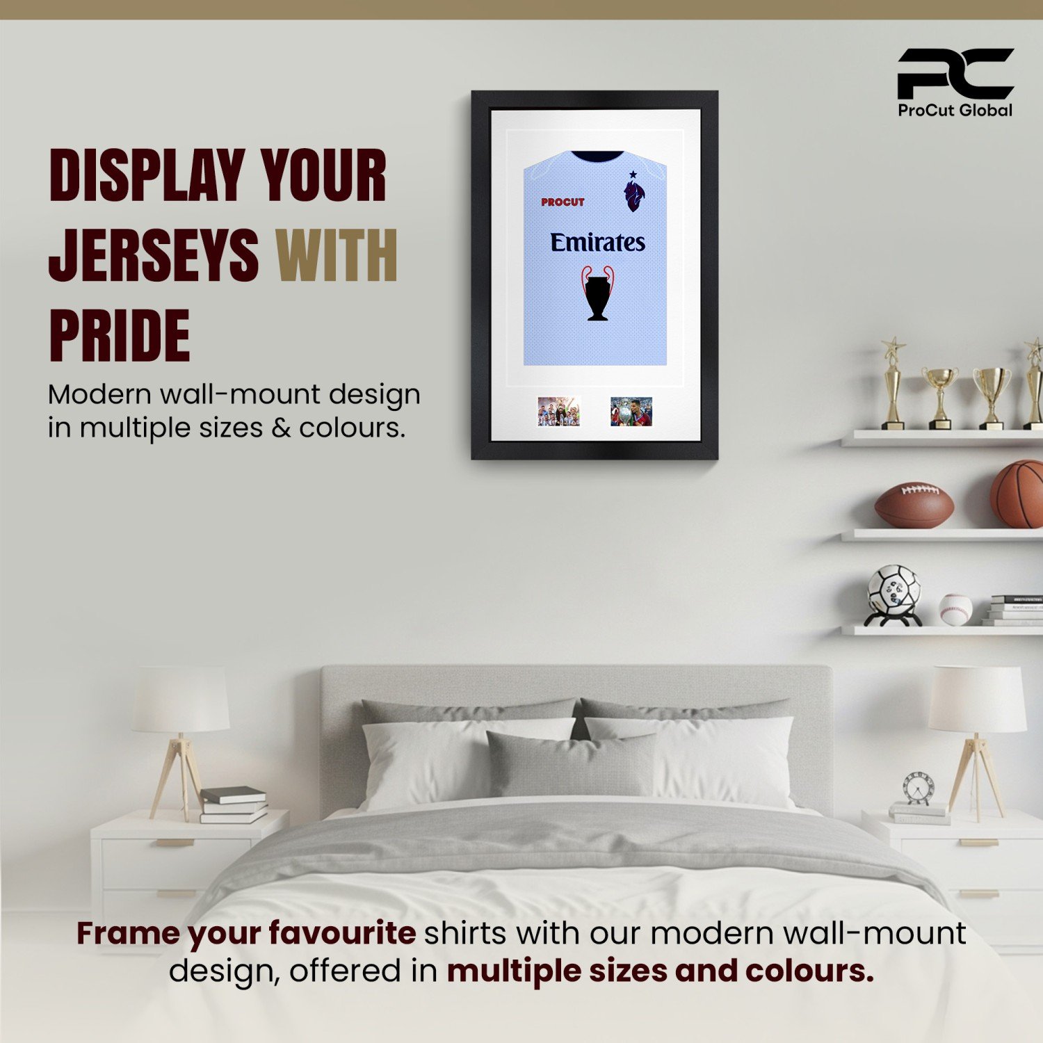 Elevate your most treasured jersey to a work of art with the ProCut Global 90x60cm Football Shirt Frame. This high-quality frame boasts a deep, 3D display case that beautifully preserves and showcases cherished sports memorabilia. Perfect for displaying a prized, autographed football shirt, a commemorative rugby jersey, or a marathon vest filled with sentimental value, this sleek frame allows you to proudly share your passion while safeguarding it for generations to come.